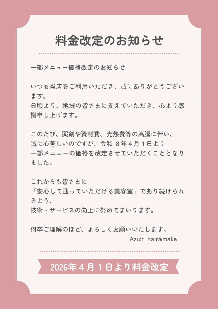 Azu:r hair&make のホームページへ❤︎